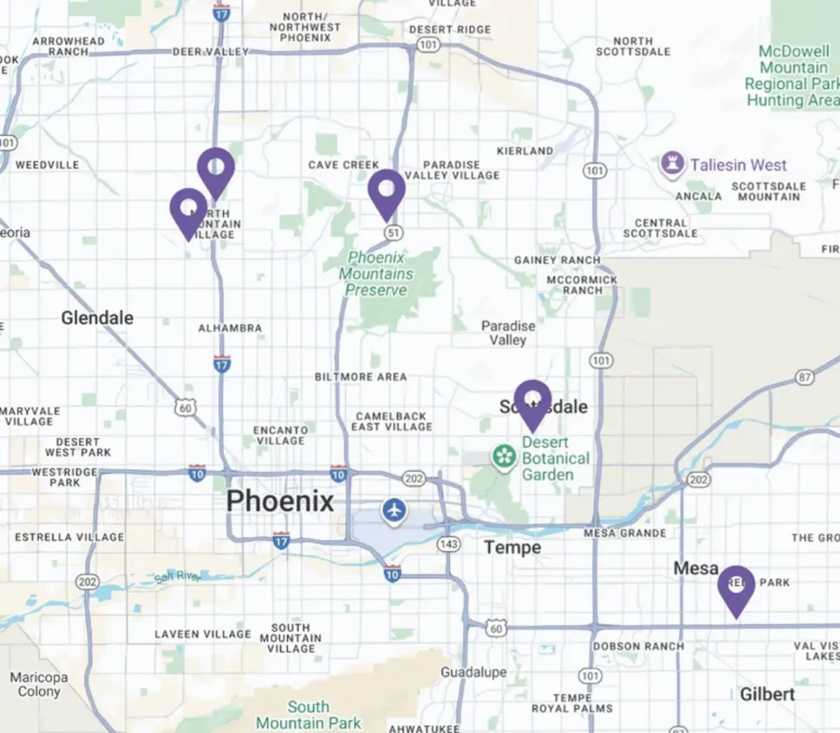 The Healing Effect offers in-person therapy at multiple convenient locations across the Valley, including three offices in Phoenix, as well as sites in Scottsdale and Mesa. All of our locations are by appointment only to protect client privacy and ensure a calm, personalized experience. Whether you’re looking for therapy near you or prefer the flexibility of remote care, we’re here to help.